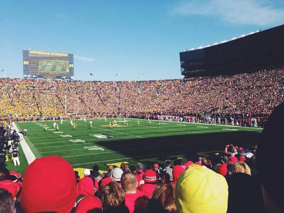 My wife didn’t understand the rivalry either. She’s a California girl, born and raised. A fellow Michigander joked that Nicole “didn’t even know how to spell football” before she met me. After becoming familiar with the concept that Michigan and Ohio State played each other in football each year, and that it seemed important to me, Nicole did for me what she thought was a loving act. She assumed that since I like Michigan, I must also somewhat like Ohio State — you know, since they play each other and all. After getting ready to go out one evening a few weeks before our wedding, I walked out of my bathroom to find an Ohio State t-shirt laid flat on my bed. It was a “gift” for me. My immediate shriek of horror, and my father’s long pause and subsequent “she did what?” when I told him what happened, provided her the clarity she needed. Things are much different today. Trailing the heavily favored Ohio State Buckeyes 42-41 in the 2013 Game — the first college football game she ever attended — Michigan was about to attempt a game-winning two-point conversion when Nicole was moved to tears by the awe and wonder that had come over my face and by her own recognition that before her was more than a field, scoreboard, helmets, and a two-point attempt that would ultimately fail.